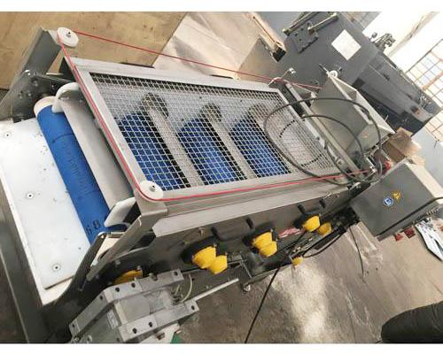 聚合物和汙泥通過聚合物分配機和汙泥泵注入汙泥冷凝液混合器,混合後通過汙泥分配裝置將聚合物和汙泥均勻分散注入過濾帶。通過重力脫水區、楔形壓縮區、預壓脫水區、低壓脫水區、剪切脫水區等一係列壓濾效果,使汙泥餅沿過濾帶方向連續加壓,直至汙泥餅從排放口脫落。